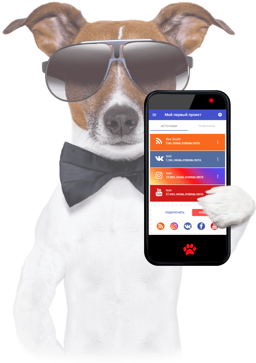 Чтобы настроить автопостинг в Instagram с помощью сервиса SEOlit, нужно подключить аккаунт в Instagram в качестве приёмника трансляции. Для этого в созданном проекте откройте вкладку «Приёмники» и выберите функцию «Подключить соцсеть». Программа откроет список приёмников, из которых нужно выбрать Instagram, заполнить поля «Название подключения» и ввести логин и пароль.